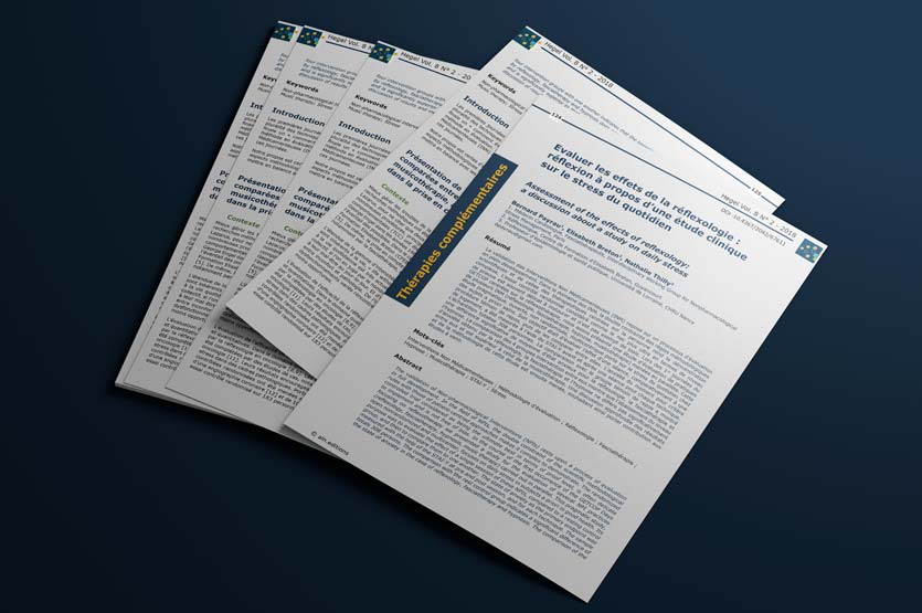 Elisabeth Breton a participé avec les réflexologues de son école à une étude multicentrique sur les effets de quatre méthodes non pharmacologiques évaluant le niveau du stress avant et après application d’une séance. Elisabeth Breton a piloté la branche Réflexologie. L’évaluation de l’état de stress et de l’anxiété est effectuée en utilisant l’échelle STAI-Y qui permet de mieux comprendre la nature de l’anxiété présente dans les états de stress.